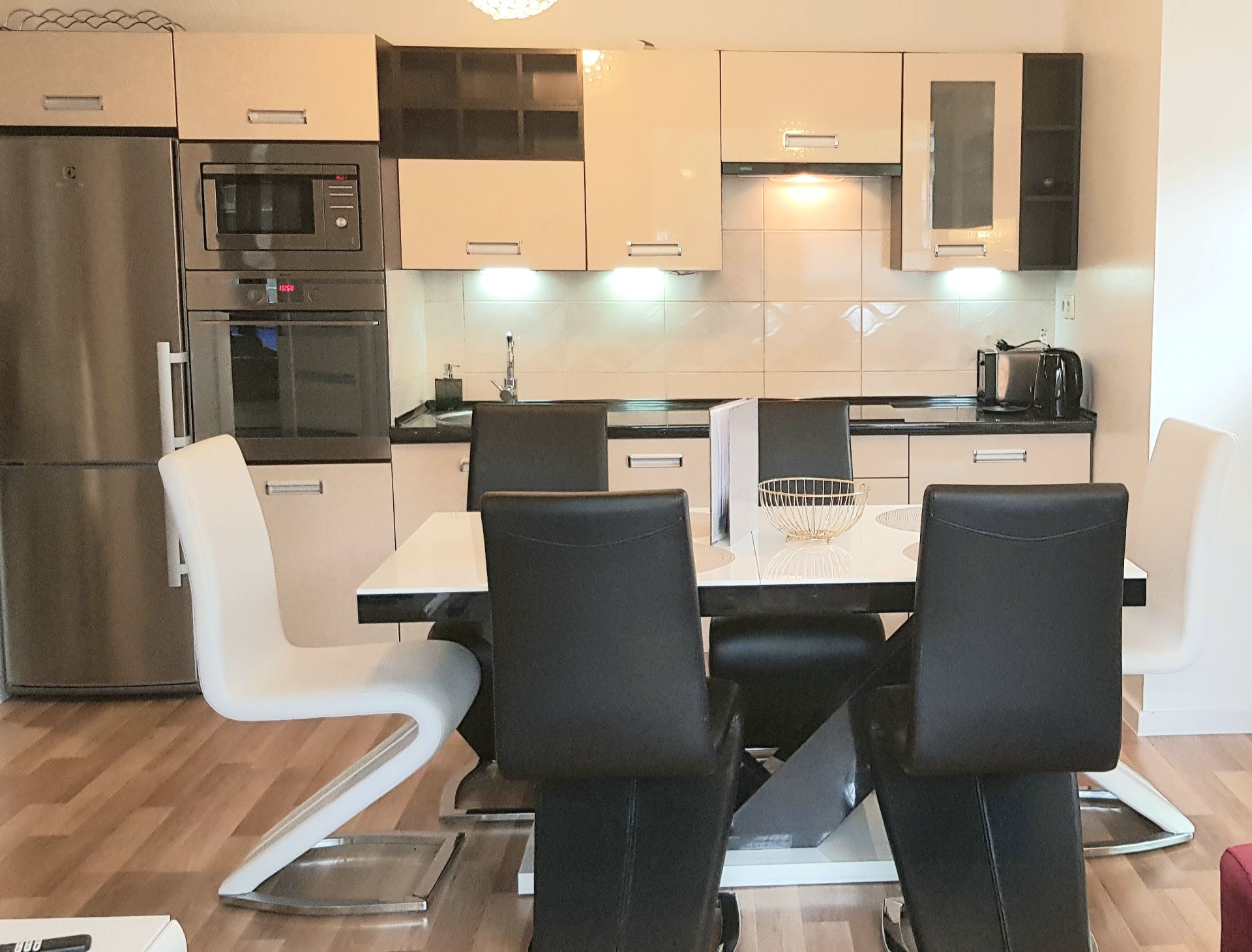 Apartament zmieści 4 osoby. Składa się z sypialni, salonu z aneksem kuchennym oraz łazienki. Urządzony bardzo przytulnie. Wyposażenie obejmuje wszystkie potrzebne gościom rzeczy, w pełni wyposażona kuchnia pozwala na samodzielne przygotowanie posiłków.