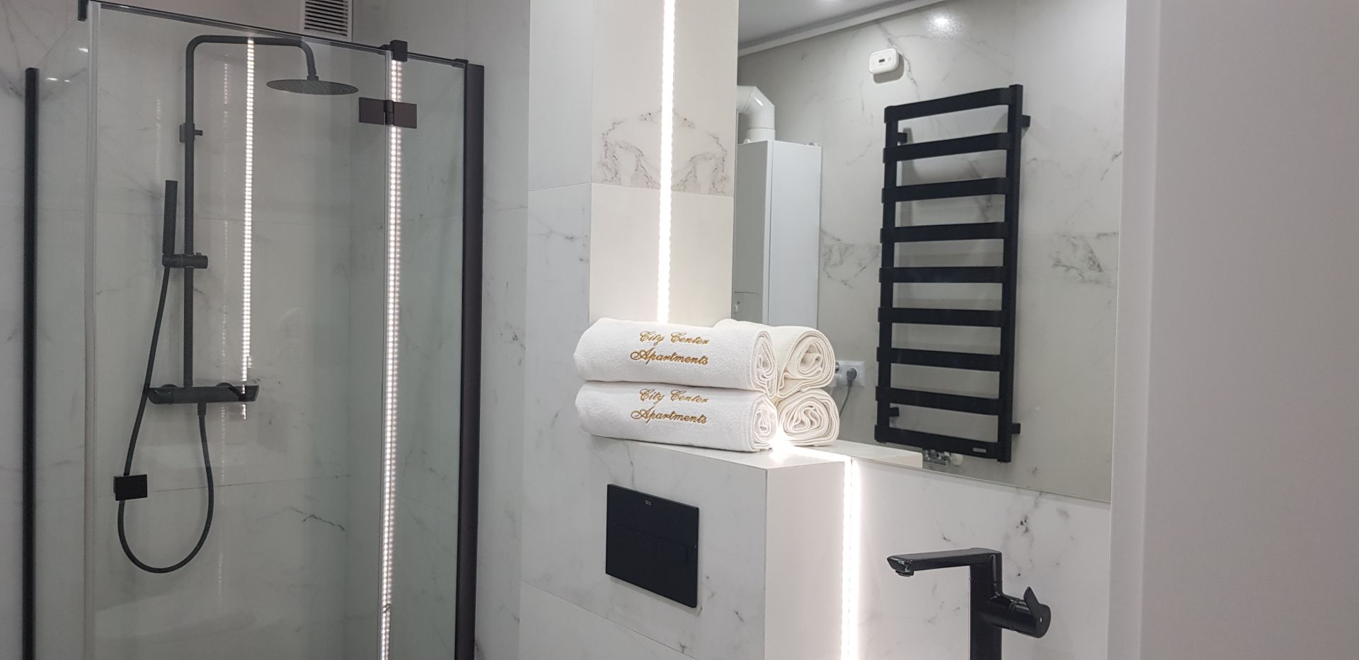 Największym atutem apartamentu jest duży balkon, z którego roztacza się fantastyczny widok na miasto i okoliczne góry.