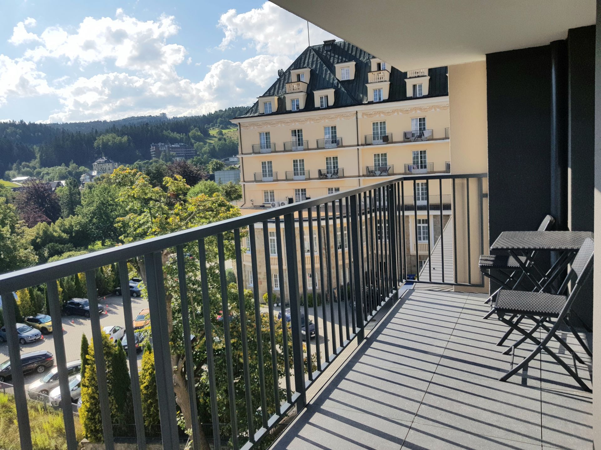 Apartament posiada wspaniały balkon, z widokiem rozciągającym się od Góry Parkowej aż do Słotwin. Całość zlokalizowana jest na drugim piętrze.
