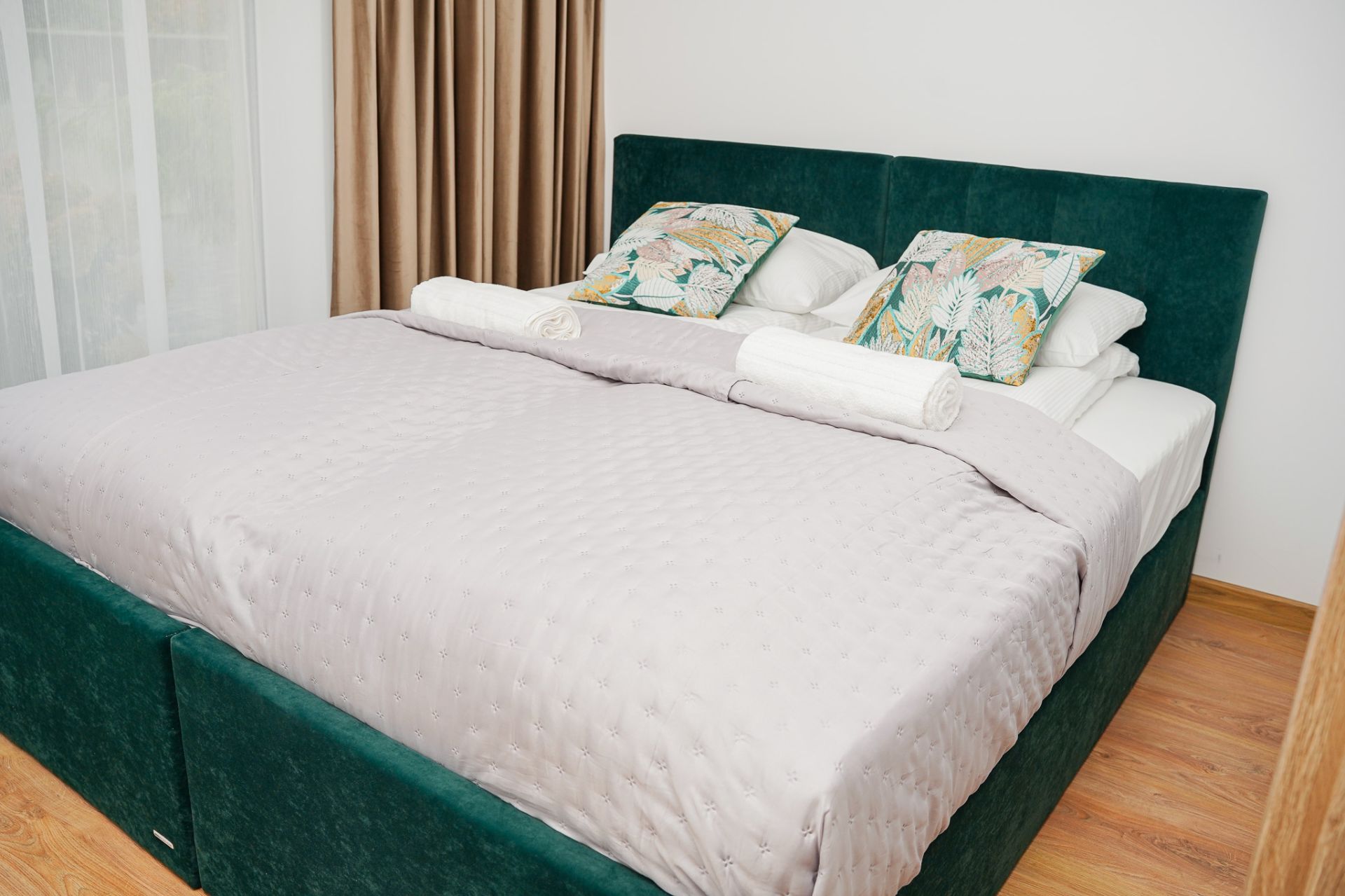 W sypialni są dwa jednoosobowe łóżka (które można złożyć w jedno, duże łóżko), w salonie do spania przygotowano dwuosobową sofę. Dzięki temu apartament idealnie nadaje się dla rodziny ze starszymi dziećmi lub przyjaciół oraz na pobyty biznesowe.