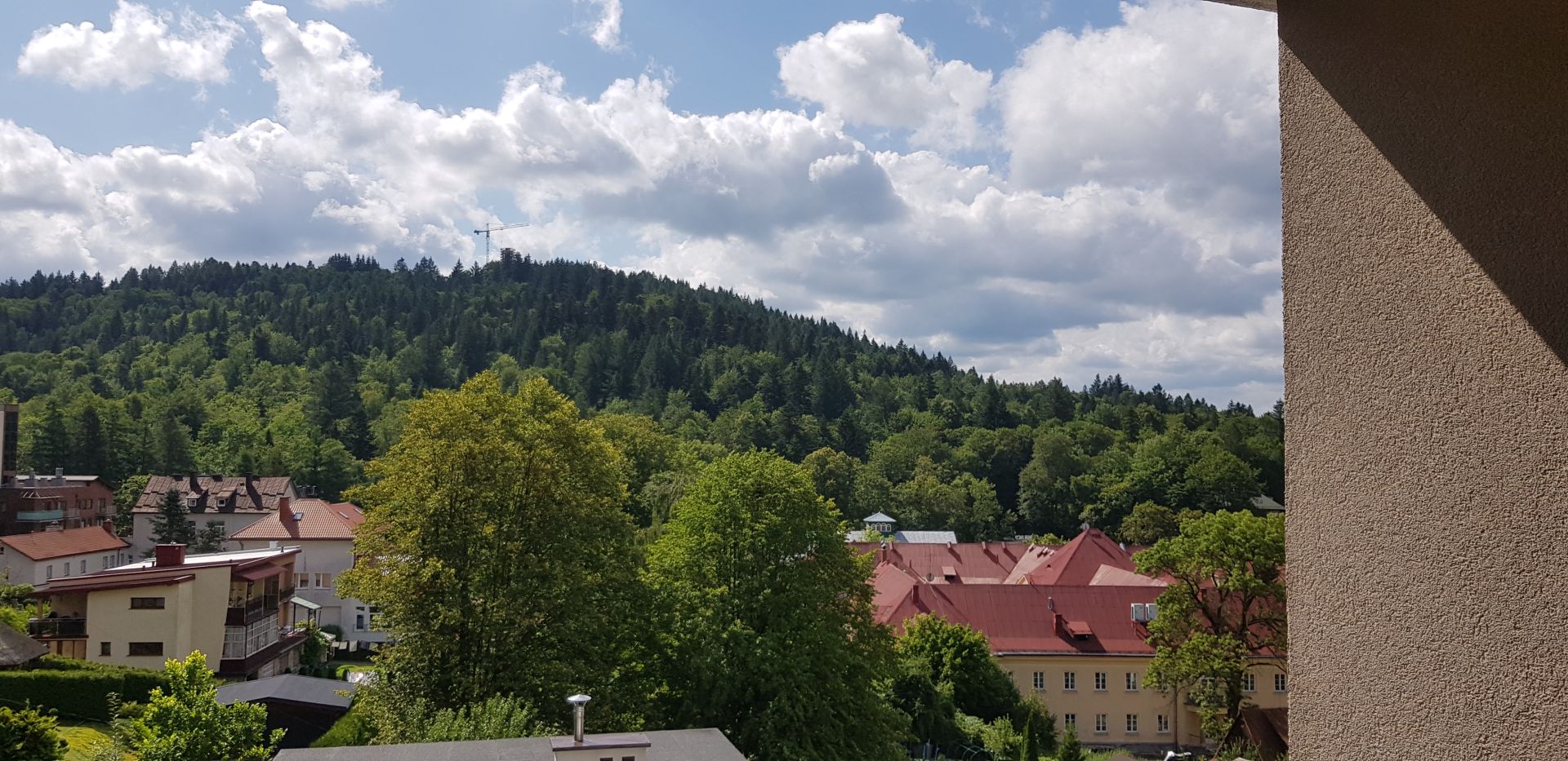 Apartament posiada balkon widokiem na Górę Parkową, całość zlokalizowana jest na trzecim piętrze.