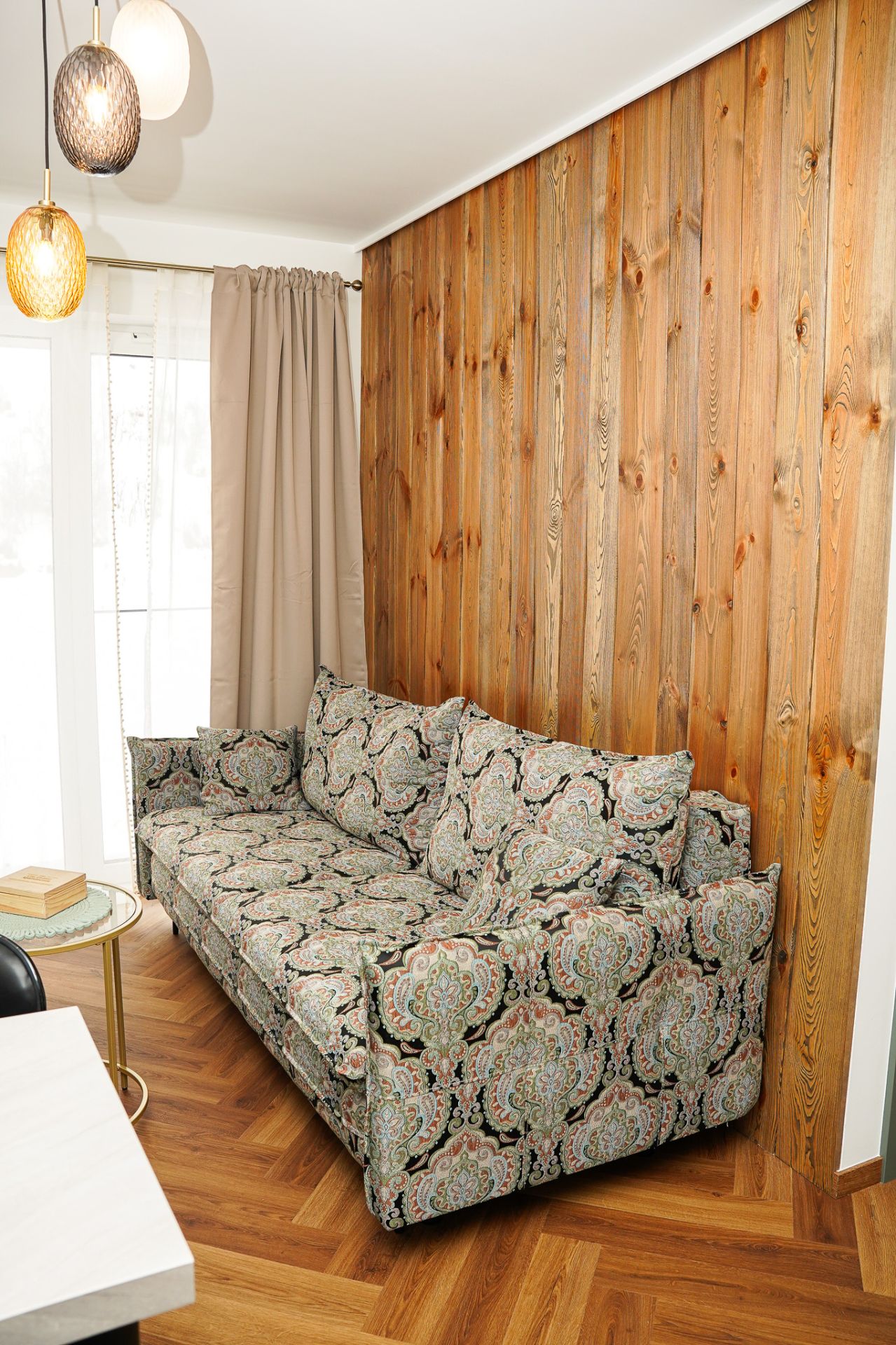 W sypialni jest bardzo wygodne łóżko, w salonie do spania przygotowano dwuosobową sofę.