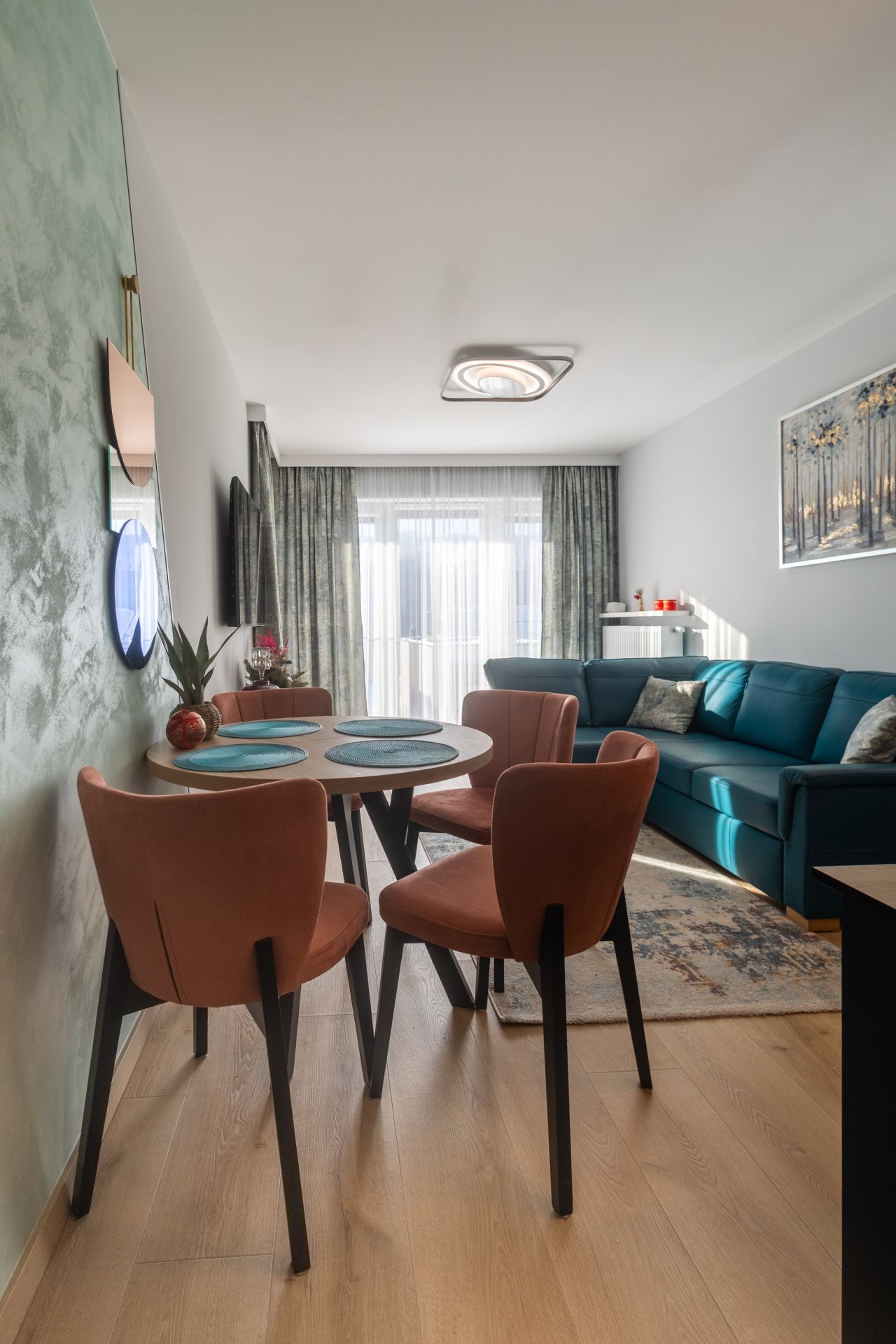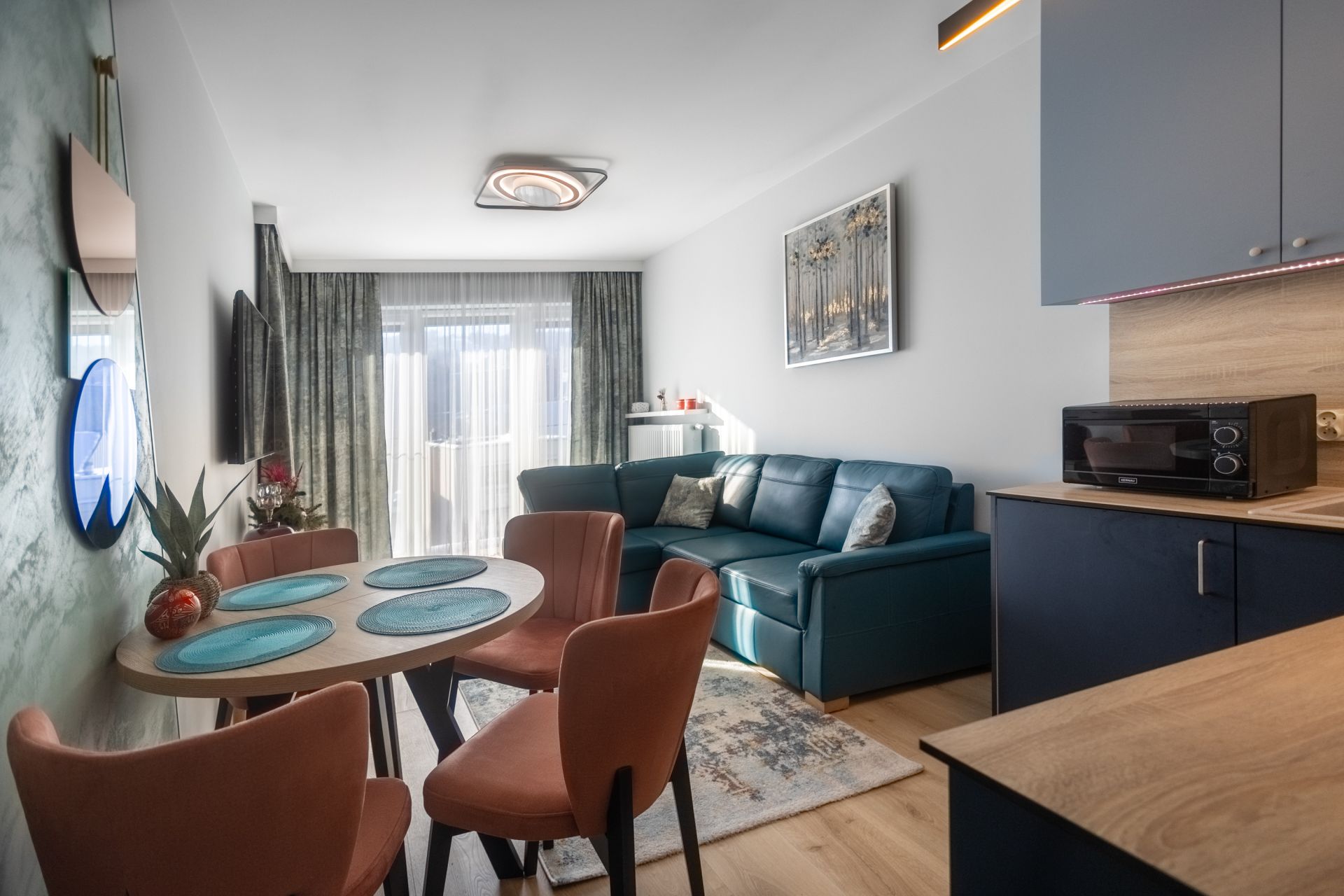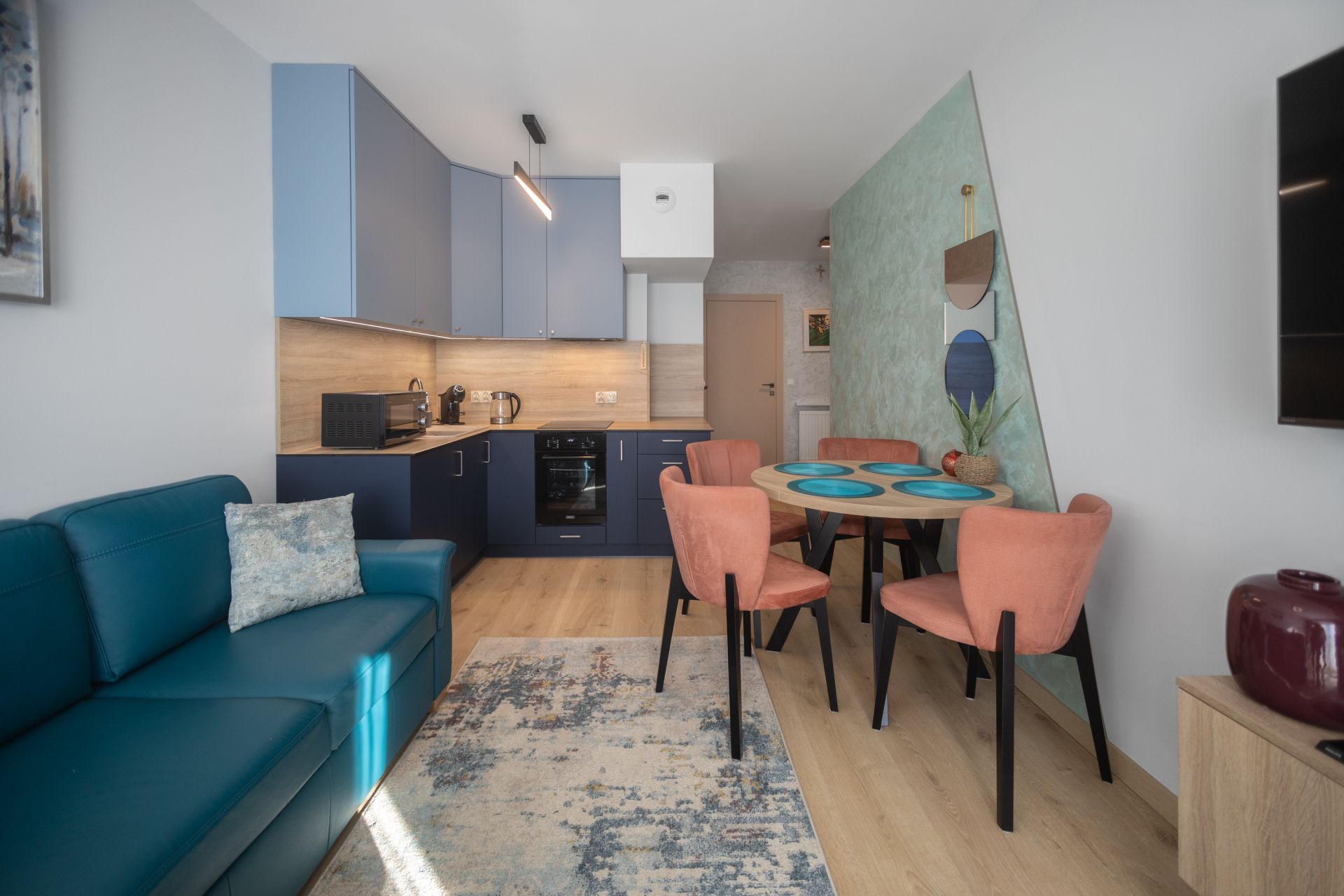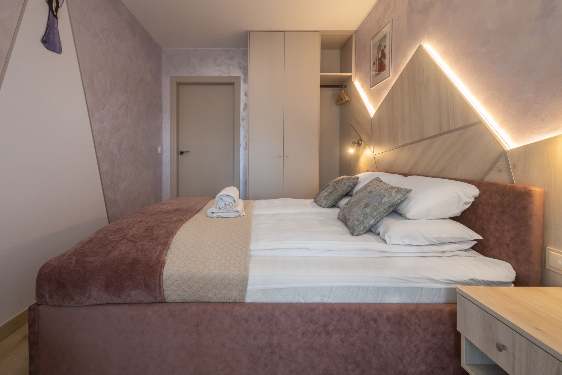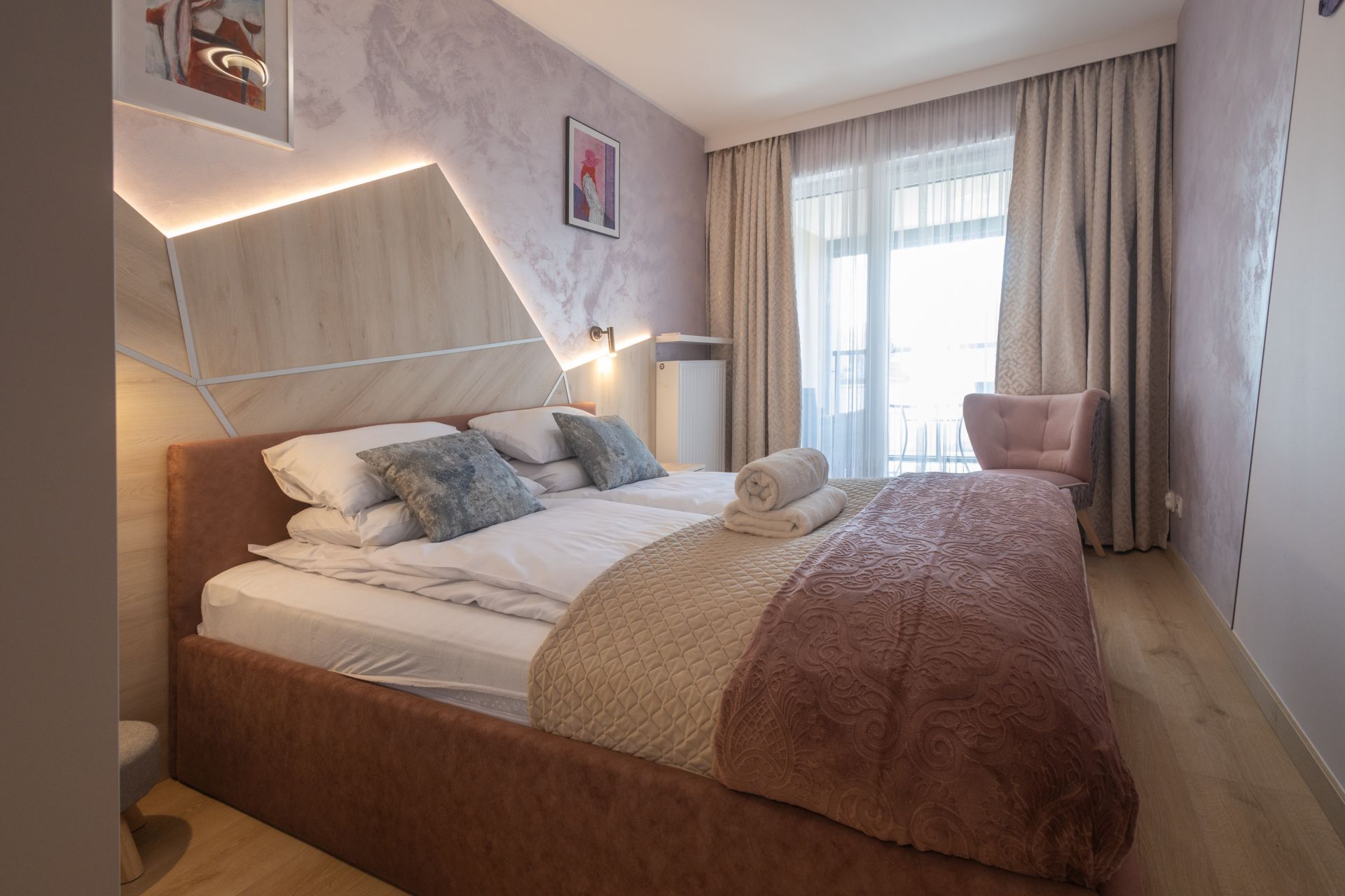 Czteroosobowy apartament, z bardzo gustownym wnętrzem. Wysokiej jakości wyposażenie, sprzęt AGD i materiały wykończeniowe sprawiają, że apartament jest enklawą wygody, a wypoczynek w nim to nowy poziom podróżowania.