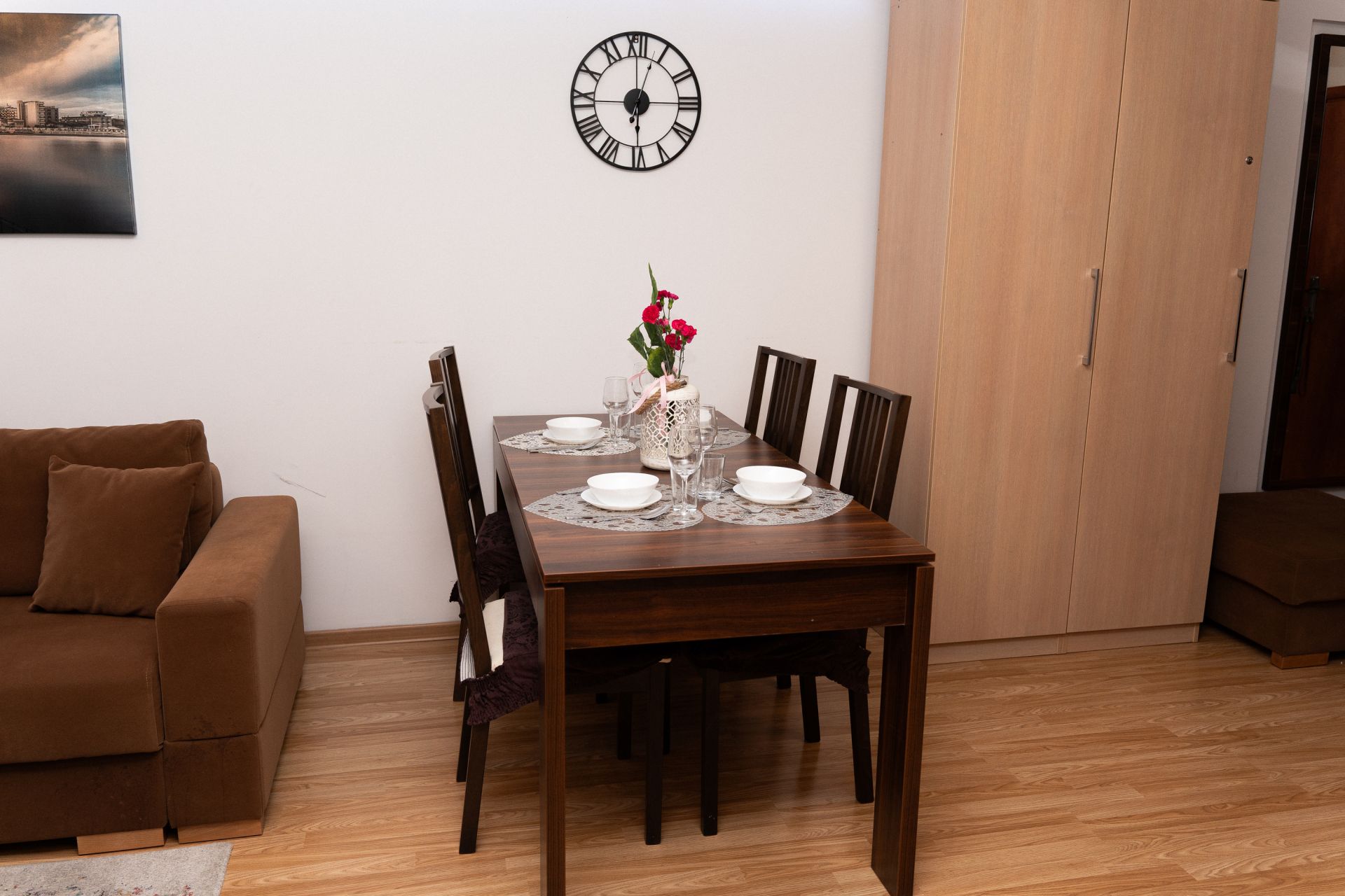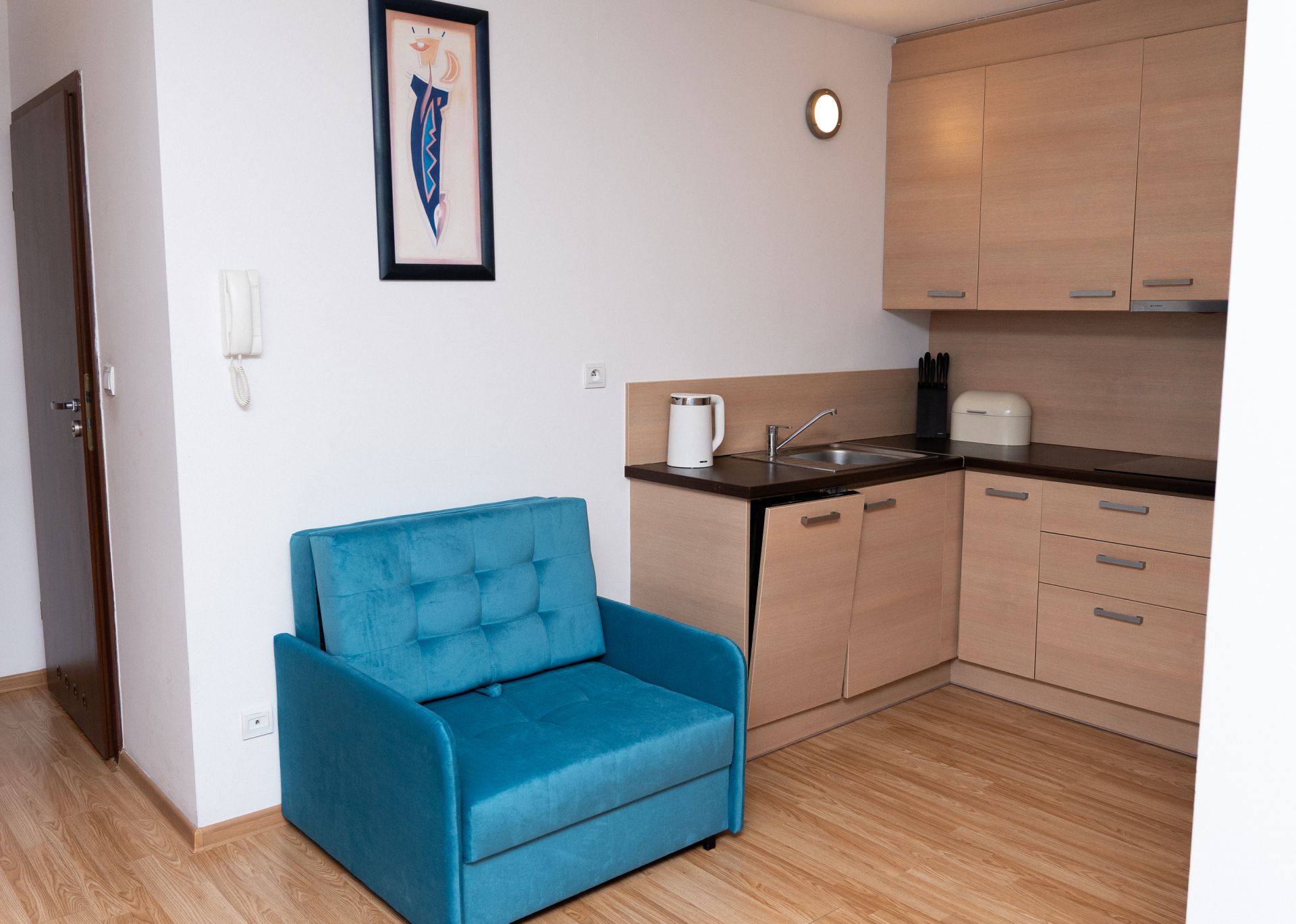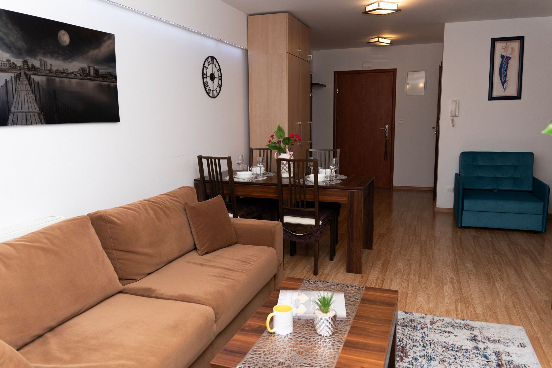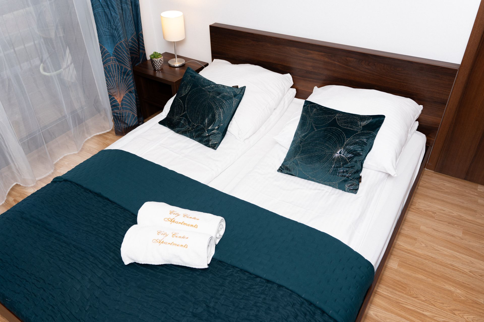 Apartament mieści 6 osób. Składa się z sypialni, salonu z aneksem kuchennym oraz łazienki. W sypialni jest duże małżeńskie łóżko, natomiast w salnie przygotowano dla Gości dużą, dwuosobową sofę, jednoosobowy fotel oraz mniejszą dwuosobową sofę.