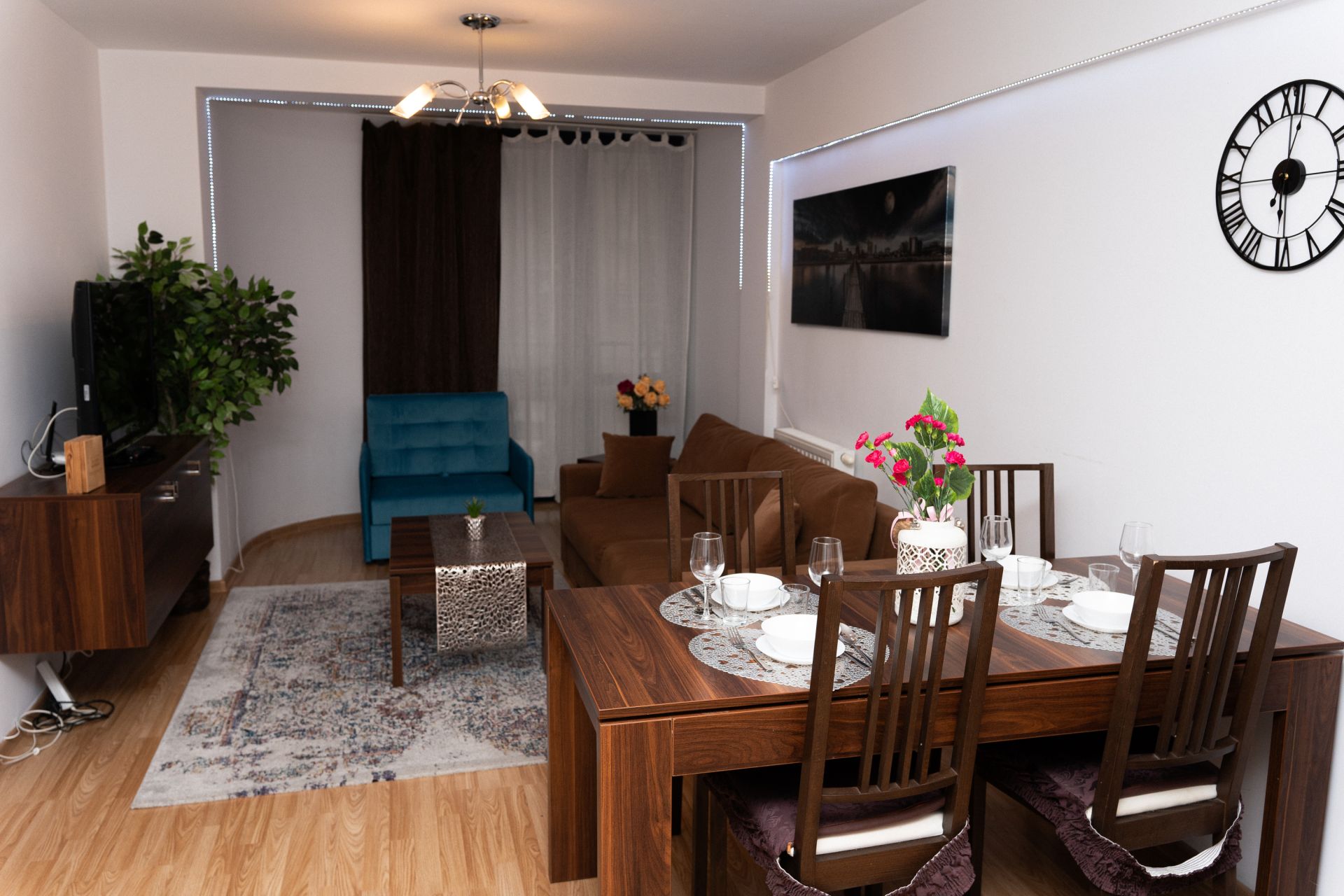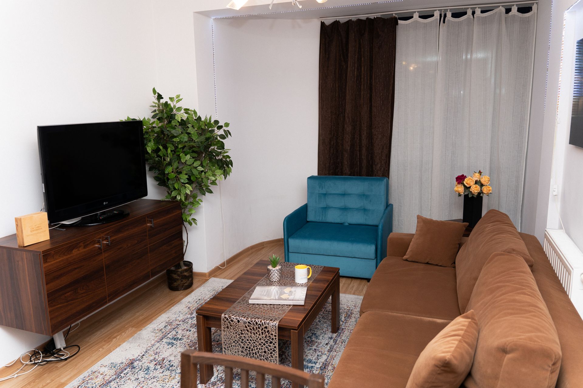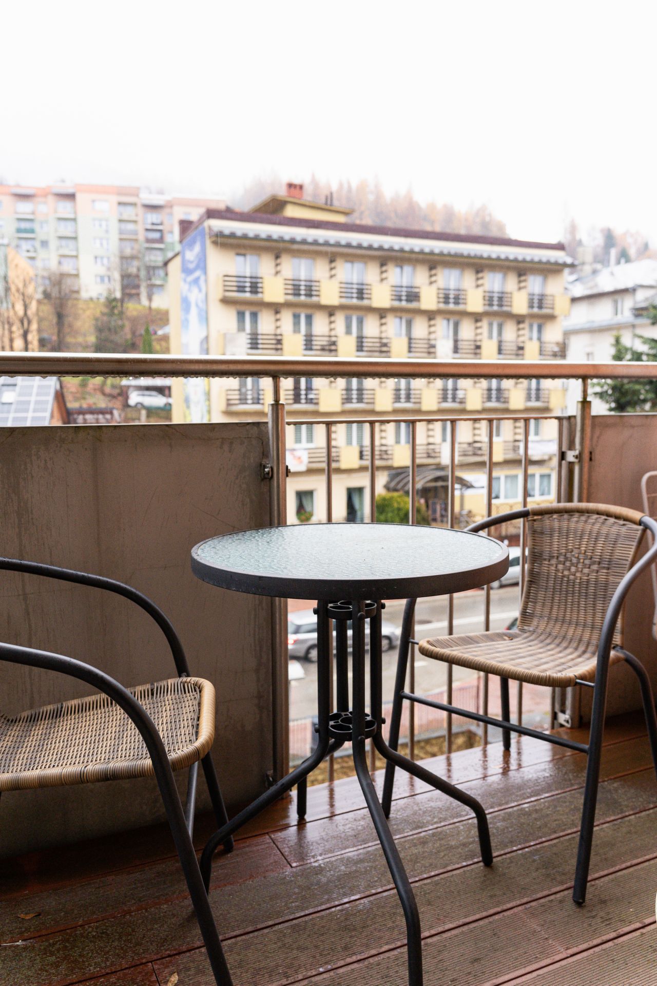 Największym atutem apartamentu jest duży balkon, z którego roztacza się fantastyczny widok na miasto i okoliczne góry.