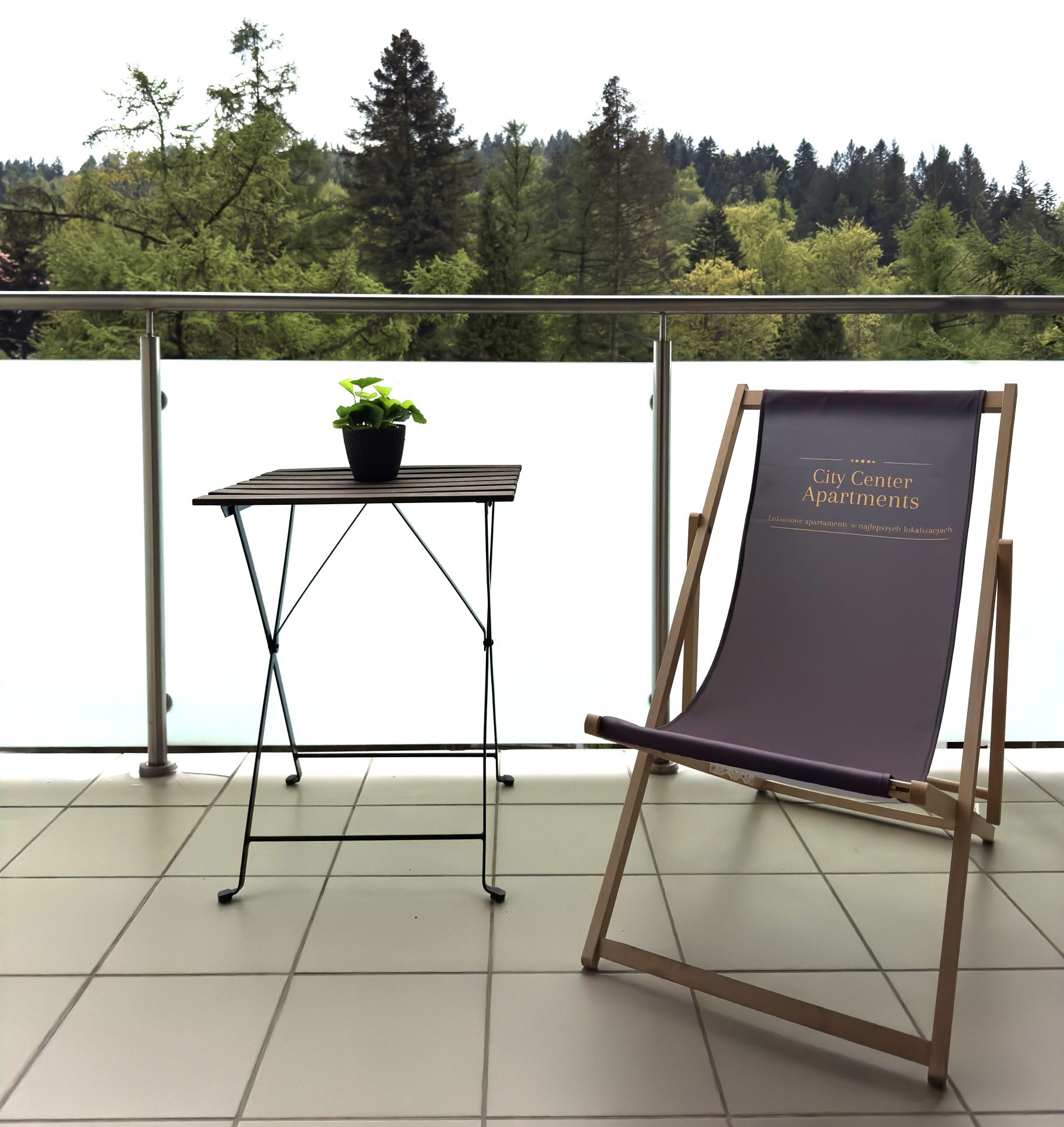 W apartamencie jest duży balkon z widokiem na miasto oraz okoliczne góry.