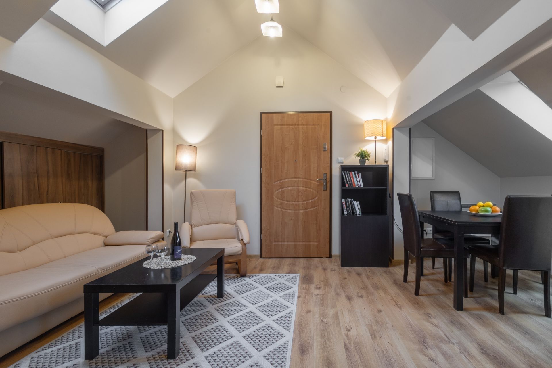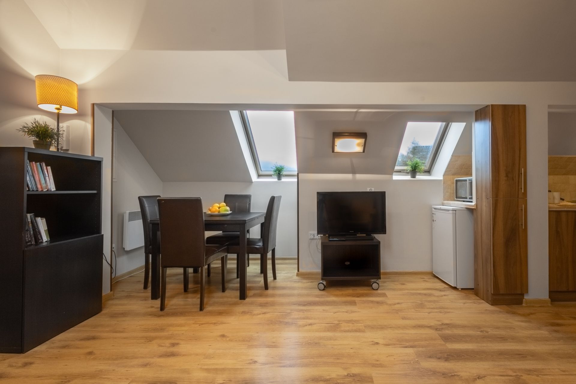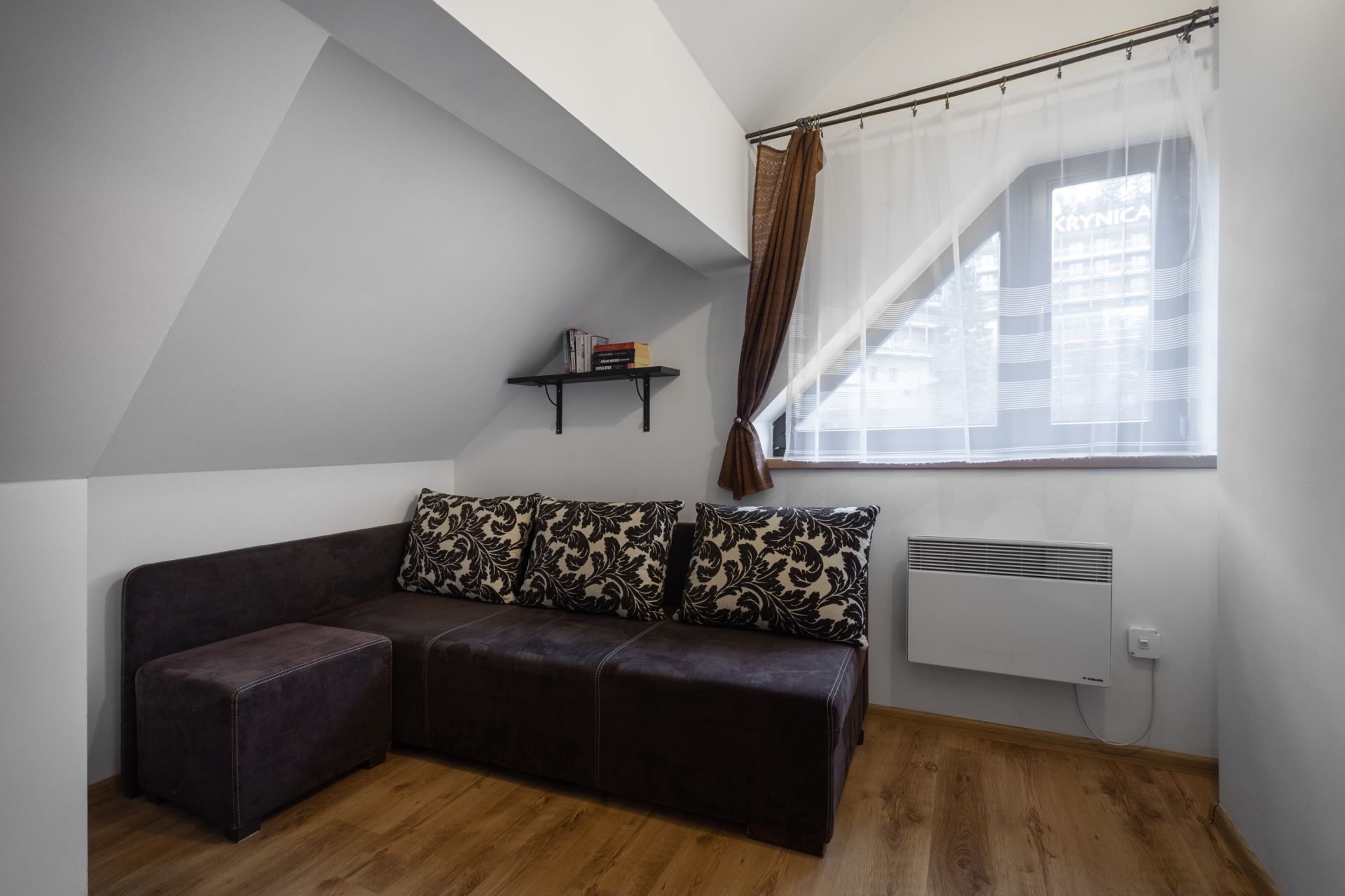 Sprawdzi się dla sześciu osób. Składa się z salonu połączonego z kuchnią, dwóch sypialni oraz łazienki. Do spania służą wygodne sofy, sam apartament jest bardzo ciepły, z południowo-zachodnią ekspozycją. Z apartamentu roztacza się widok na centralne punkty Krynicy: kolejkę na Górę Parkową i wyciąg narciarski Henryk Ski.