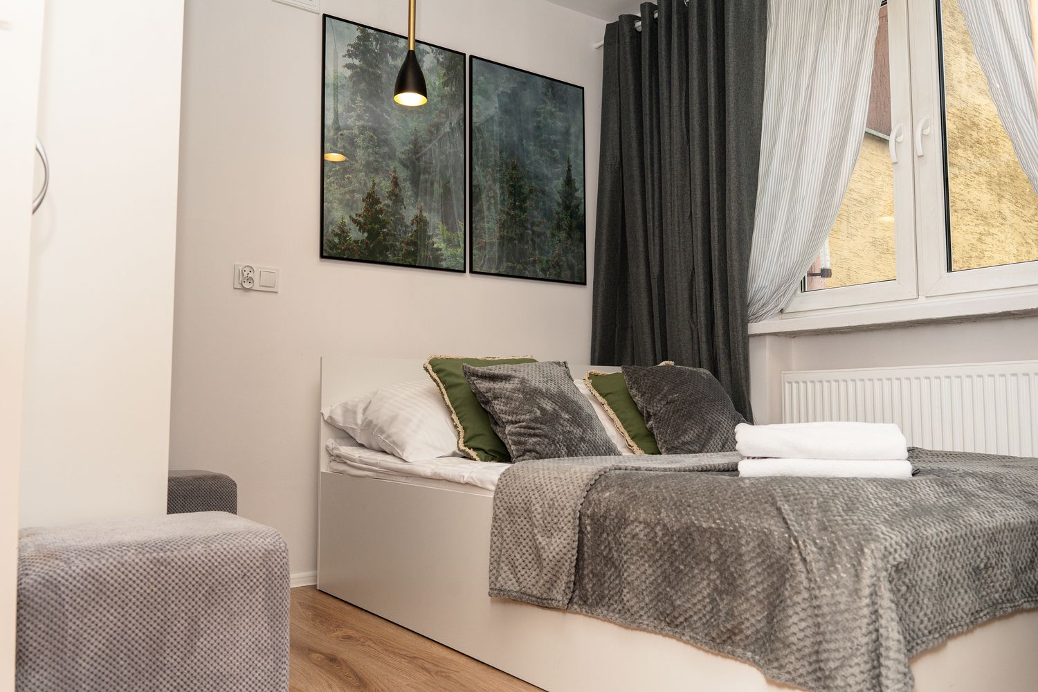 W pobliżu apartamentu jest dużo restauracji, sklepów, parki, tężnia solankowa, place zabaw, lodowisko, sankostrada. Do Deptaka jest kilka minut spacerem.
