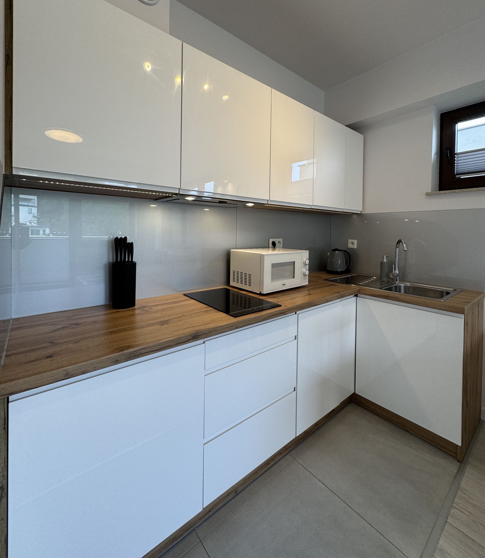 Składa się z sypialni, salonu z aneksem kuchennym, łazienki i przedpokoju. Aneks kuchenny jest wyposażony we wszystko, co potrzebne, by przygotować prosty posiłek. W łazience jest duża kabina prysznicowa oraz zestaw podstawowych środków higienicznych i ręczników.