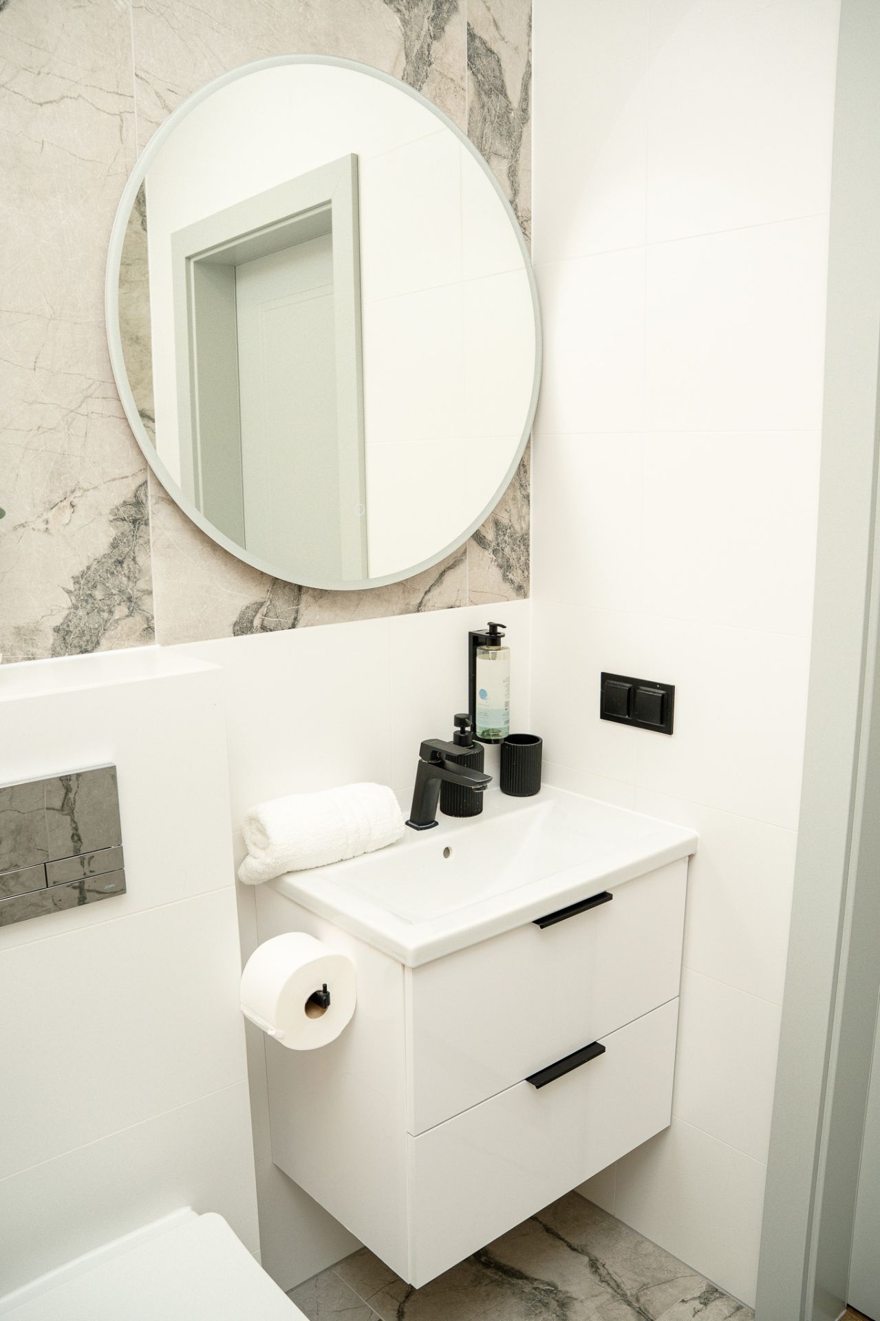 W jednej sypialni jest duże, małżeńskie łóżko, w drugiej są dwa pojedyncze łóżka, które można połączyć. W salonie do spania służy wygodna sofa. Dzięki temu apartament jest świetną opcją dla rodzin z nastoletnimi dziećmi lub grup przyjaciół.