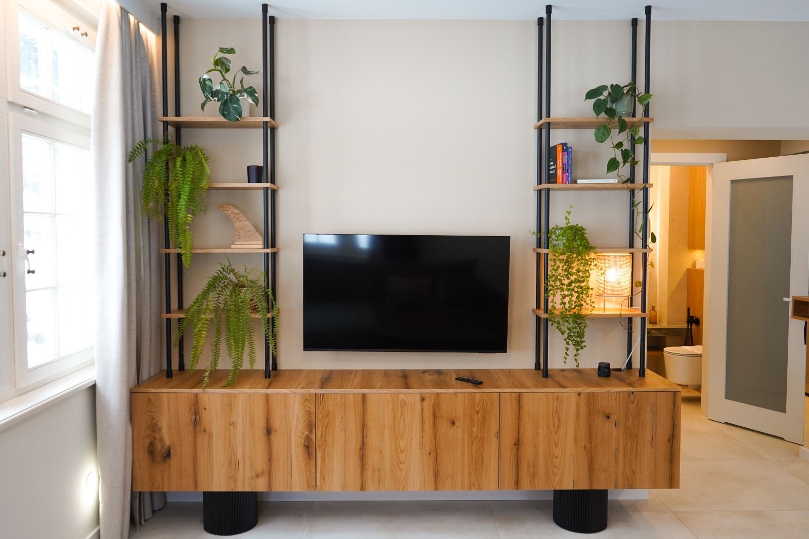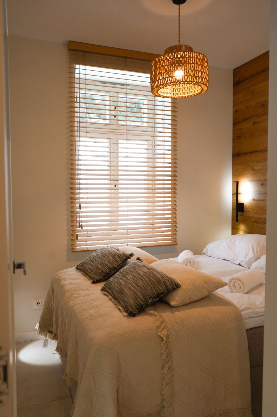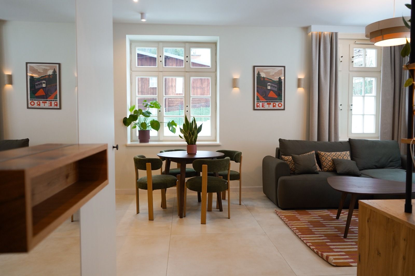 Niezwykłe okna z widokiem na las, to wspaniały element architektury, który wprowadza do apartamentu aurę luksusu.