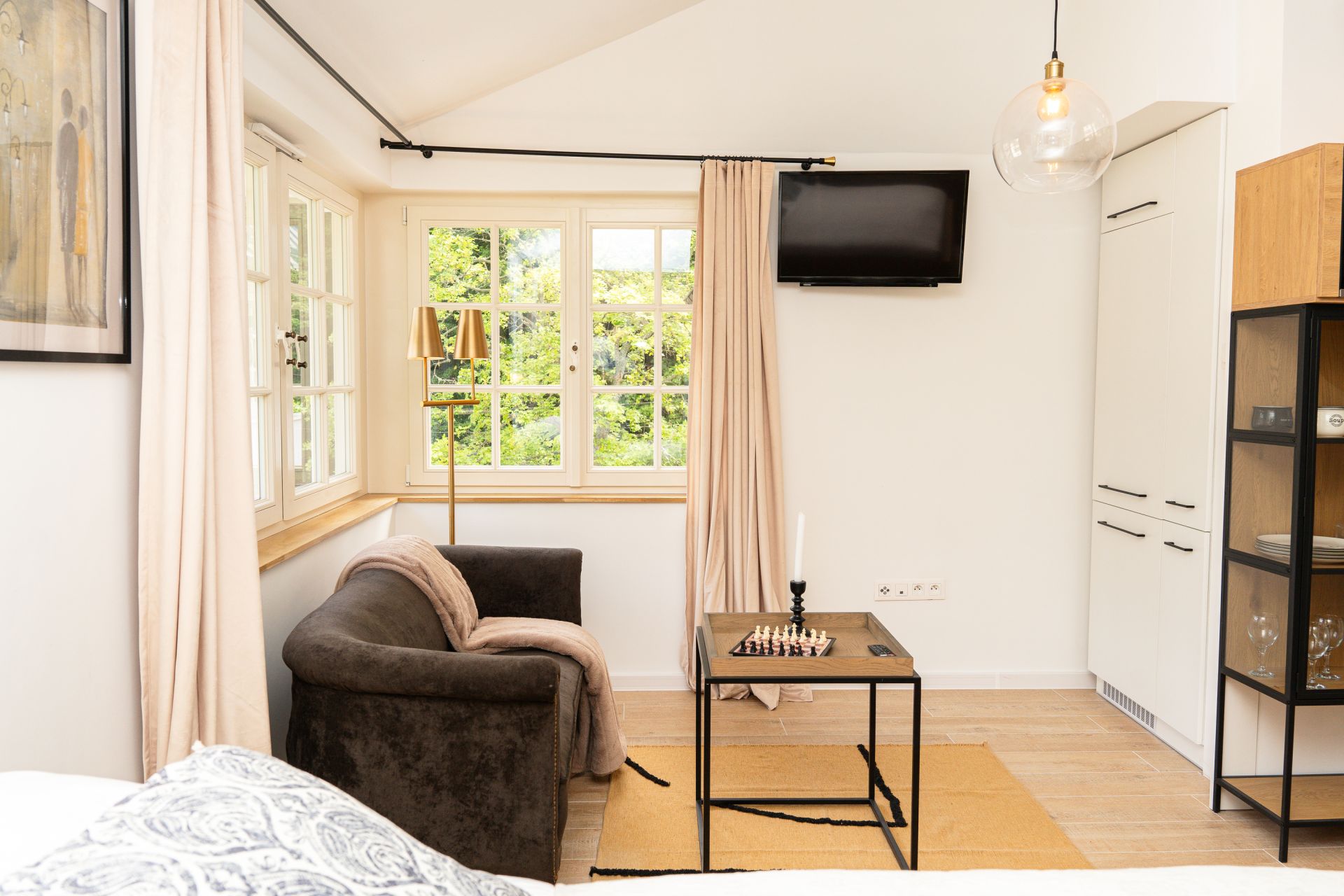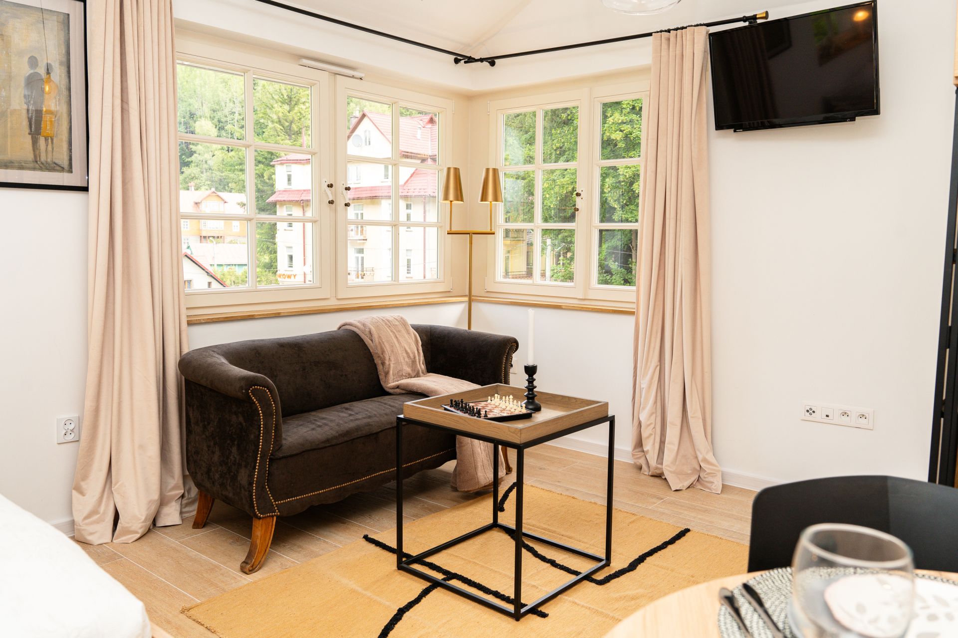 Wspaniałe okna to zabytkowy element architektury, który wprowadza do apartamentu aurę luksusu.