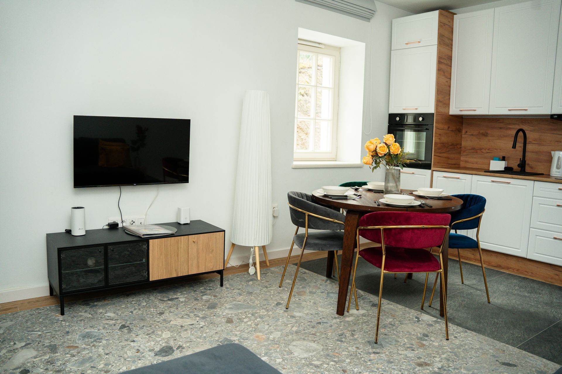 Dzięki zabytkowej architekturze budynku, wnętrze apartamentu wprowadza Gości w atmosferę tajemniczości.